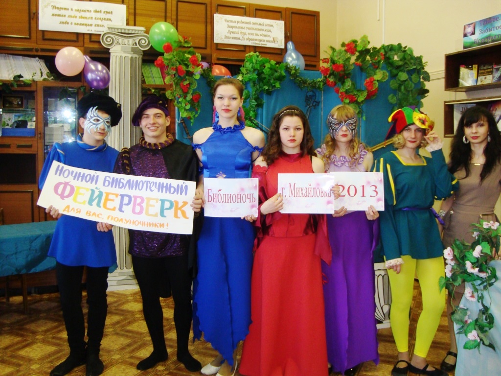 В ночь с 19 на 20 апреля Международная акция «БиблиоНочь – 2013» с успехом прошла по библиотекам. В акции приняло участие около 1000 организаций по России. В 450 городах были распахнуты двери библиотек для гостей и читателей. Это только предварительные сведения, а в реальности, как мне кажется, цифры будут больше. Сравним хотя бы по Волгоградской области: в 2012 году в рамках регионального проекта «БиблиоХаос» более 7,8 тыс. жителей Волгоградской области стали участниками БиблиоНочи, которая прошла в 77 библиотеках. В 2013 году участвовали в акции БиблиоНочь 167 библиотек нашей области (более 10,3 тыс. человек). Вот это размах! Только в Урюпинском районе участвовала 21 библиотека (в прошлом году – одна Центральная районная библиотека). У нас в Михайловке в городе участвовало три библиотеки: центральные детская и взрослая, детская библиотека №9 (в прошлом году – две: ЦГБ и ЦГДБ ). Центральная межпоселенческая и 8 сельских библиотек Михайловского района тоже участвовали в БиблиоНочи. И если первоначально в прошлом году были несколько скептические мнения по поводу проведения БиблиоНочи, то в этом году можно однозначно сказать: БИБЛИОНОЧЬ удалась!