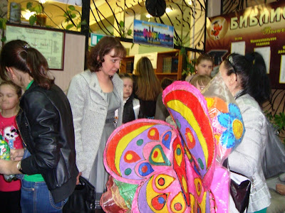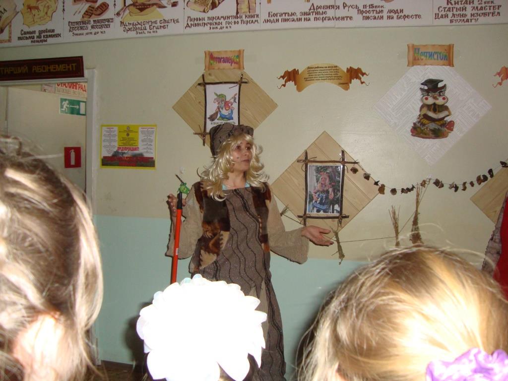 В детских библиотеках – ЦГДБ и библиотеке №9 – прошли БИБЛИОСУМЕРКИ. Начались они в 18.00. В библиотеке №9 Библиосумерки назывались «Волшебная ночь в библиотеке». На высоком крыльце стояли столы со всевозможными рукодельными чудо-вещами. Это была ярмарка-распродажа – можно было купить понравившиеся бусы, поделки, мягкую игрушку и пр. Затем на крыльцо вышла библиотекарь младшей кафедры Н.Н. Овчинникова в русском народном костюме - "Сказительница" - и пригласила всех детей с родителями зайти в библиотеку, которая оказалась и не библиотекой вовсе, а владениями Бабок-Ёжек. В соответствующих костюмах, гриме они встречали ребят в темноте, только свечи кое-где освещали это страшное жилище – с чучелом филина, Баби-Яги с Черным Котом, паутиной. Да, детей это впечатлило!