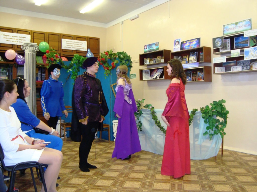 В БиблиоНочи была представлена интереснейшая программа, в которую были включены: театральная тусовка «Шекспировские страсти» (спасибо большое студентам педагогического колледжа, которые очень ярко и эмоционально представили нам театрализованные отрывки из произведений В. Шекспира). Слушать Шекспира наизусть из уст молодых людей, с эмоциями и чувствами – это круто!