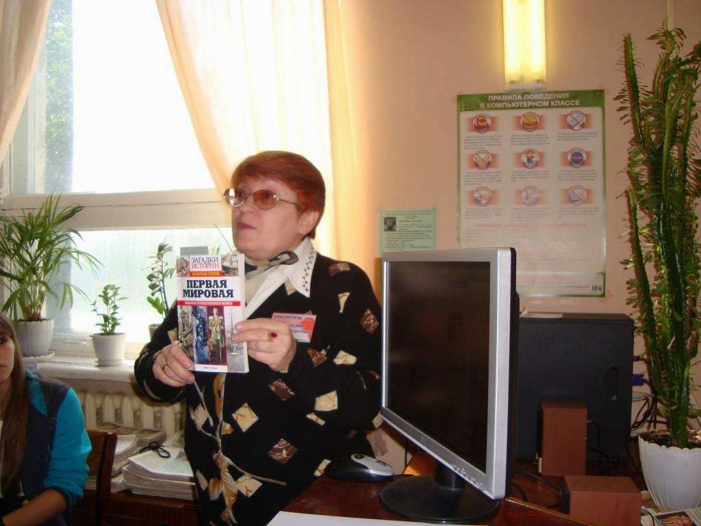 д) Вызвал большой интерес у старшеклассников веб-обзор «Первая мировая война в Интернете», где прозвучала информация не только о сайтах и блогах, посвященных Первой мировой войне, но также был представлен блог библиотеки «ПРОСТО БИБЛИОБЛОГ», его постоянная рубрика «К 100-летию Первой мировой войны».